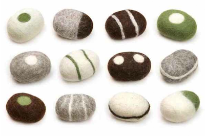 flodstenar, handgjorda av ull! En grå sten skulle passa fint i Fjällbacka där vi är på somrarna.